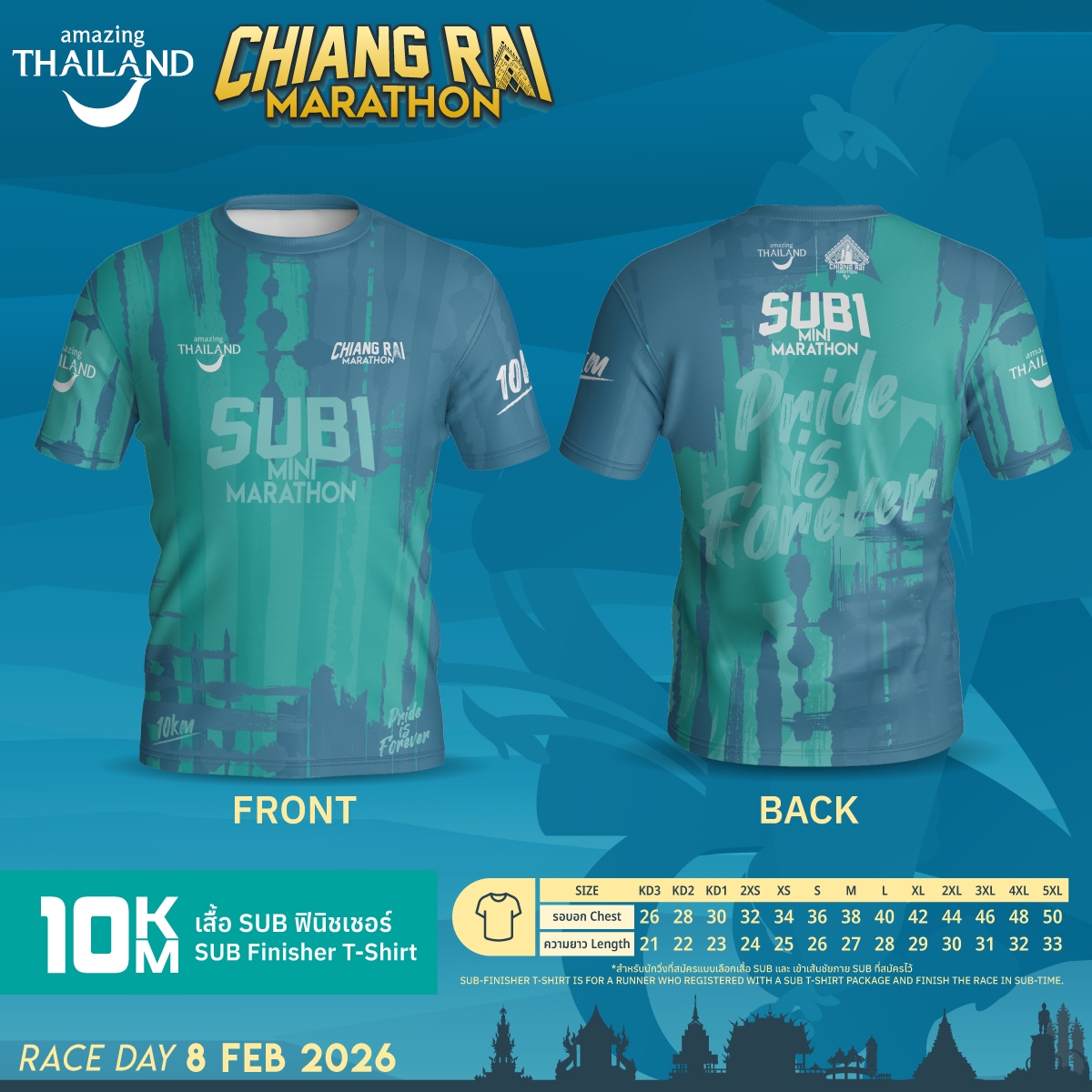 เสื้อ Sub 1 ระยะ 10 กม.: วิ่งเข้าเส้นชัยภายในเวลา 59.59 นาที