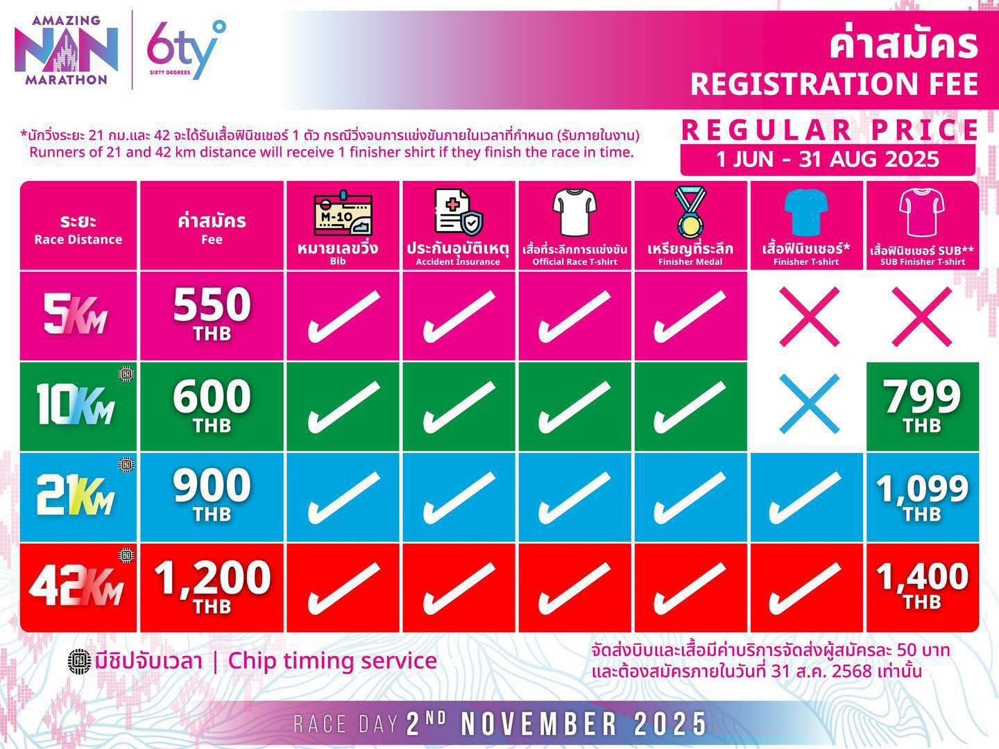 • การโอนสิทธิ์: สามารถโอนสิทธิ์การสมัครให้บุคคลอื่นหรือเปลี่ยนชื่อได้ ภายในวันที่ 30 กันยายน 2568 โดยมีค่าธรรมเนียม 100 บาท