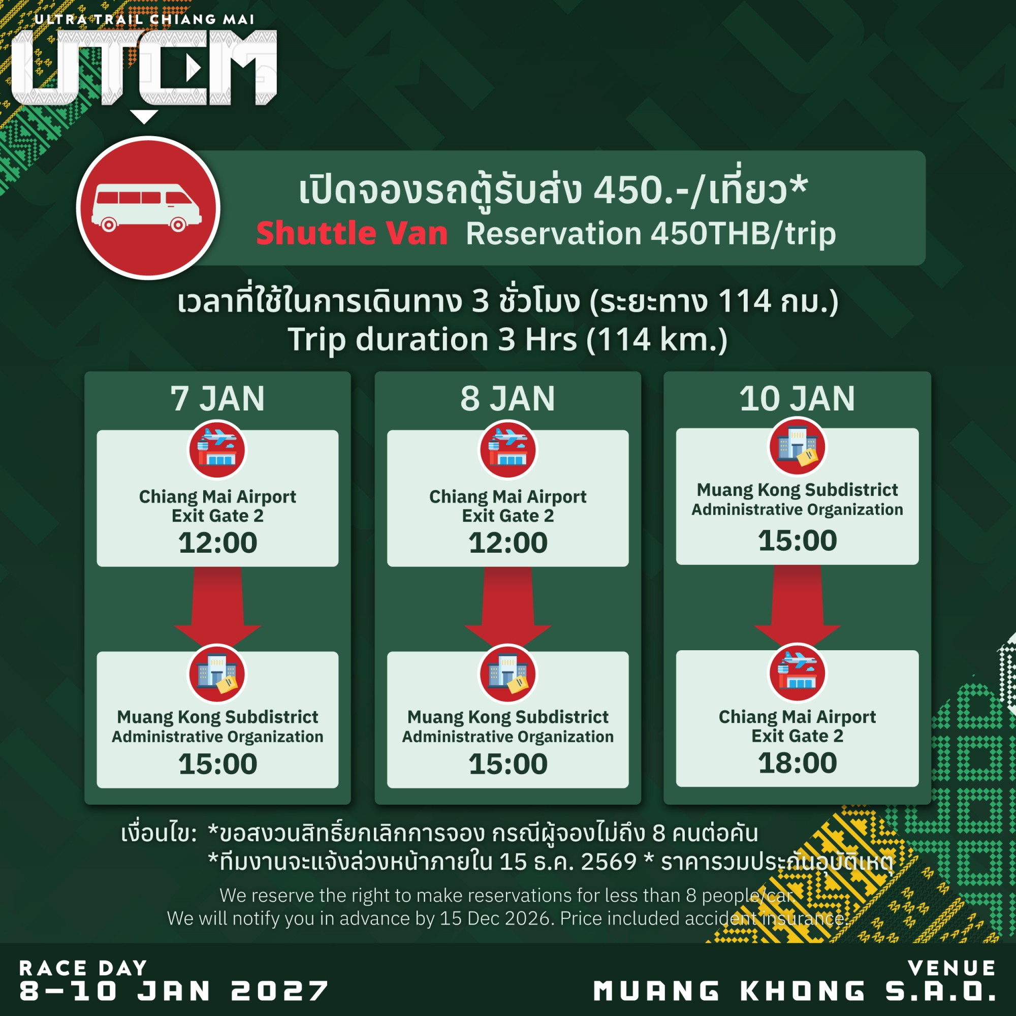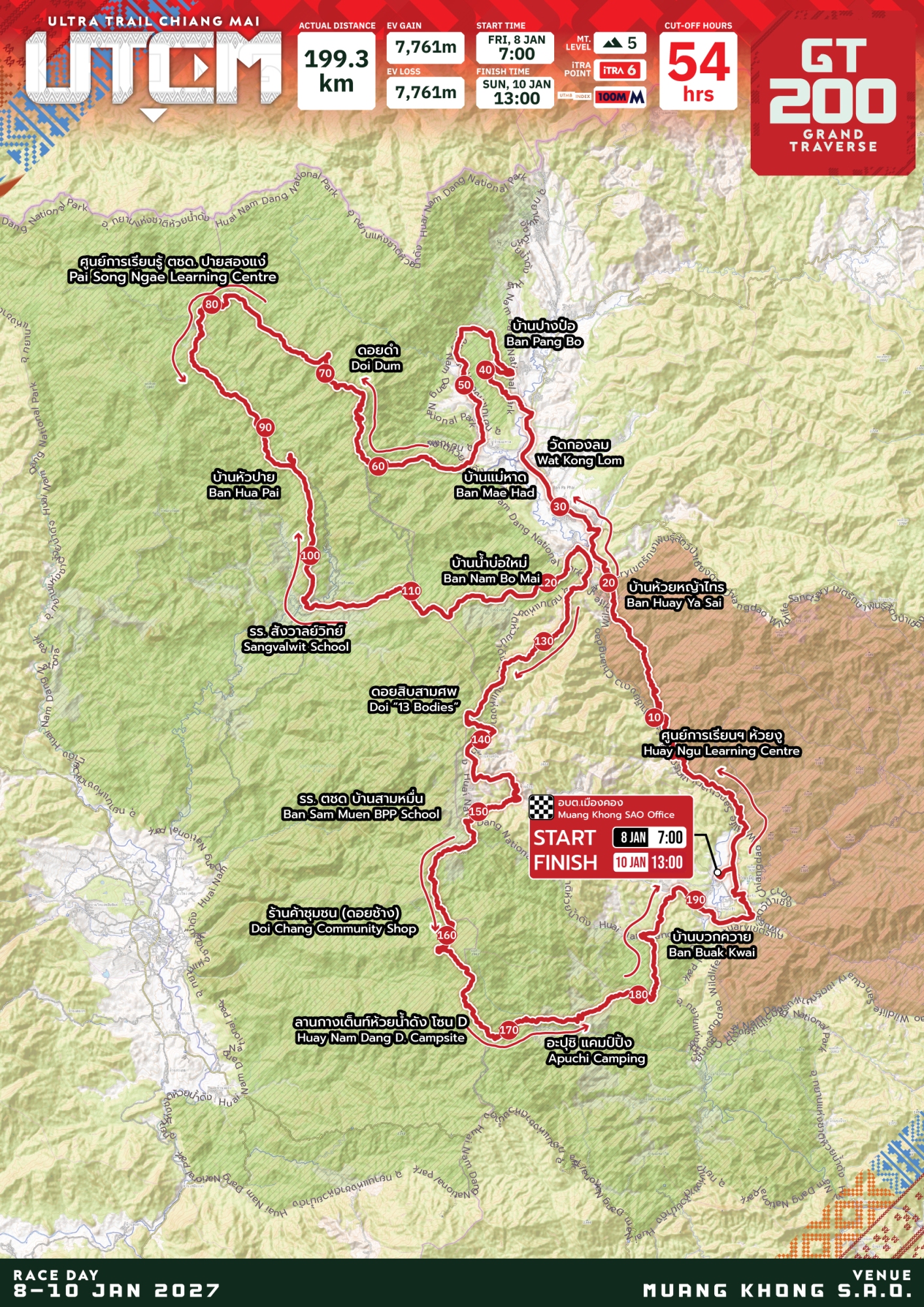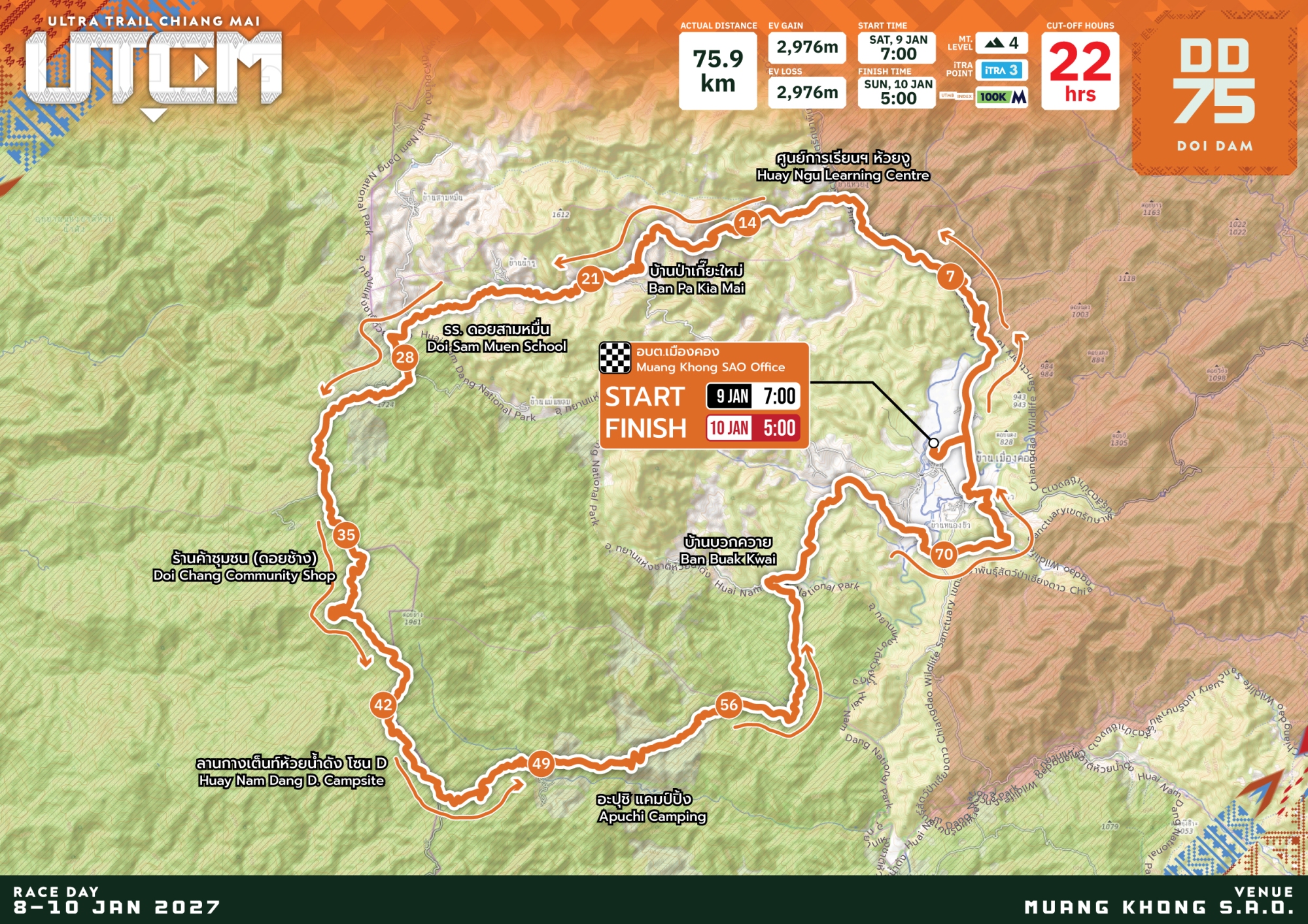 สถานที่ปล่อยตัวและเส้นชัย : องค์การบริหารส่วนตำบลเมืองคอง อำเภอเชียงดาว จังหวัดเชียงใหม่