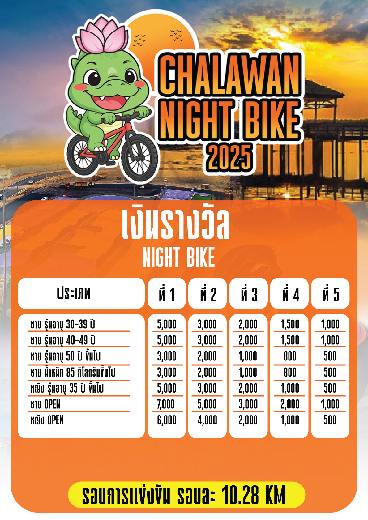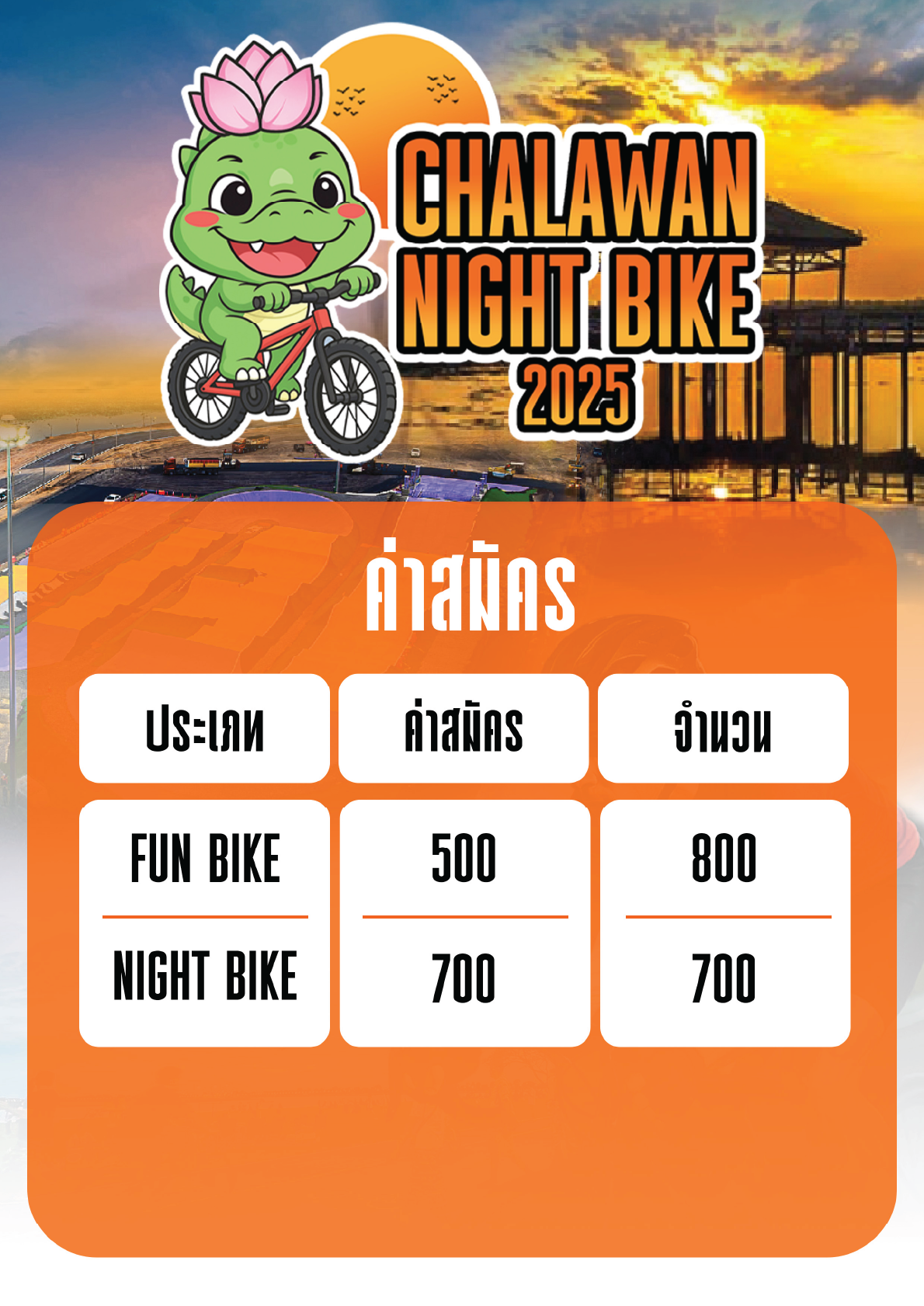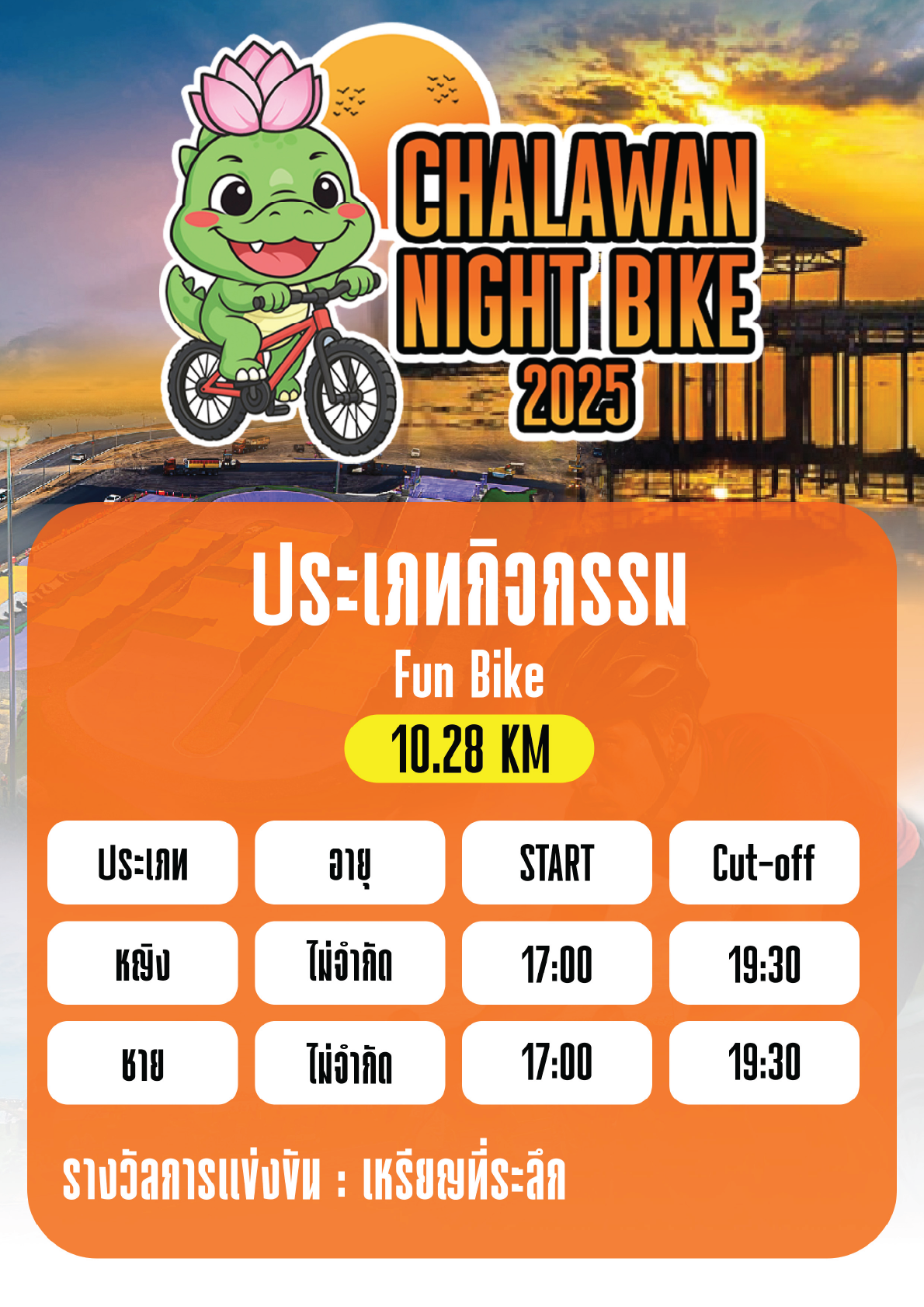 สอบถามข้อมูลเพิ่มเติมเกี่ยวกับรายการวิ่ง CHALAWAN NIGHT BIKE 2025 Official Page :https://www.facebook.com/share/14R4p46Ftzy/