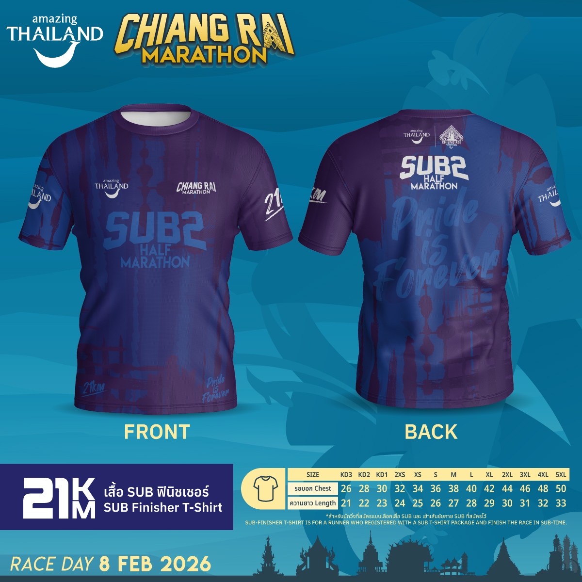 เสื้อ Sub 2 ระยะ 21 กม.: วิ่งเข้าเส้นชัยภายในเวลา 1 ชั่วโมง 59.59 นาที