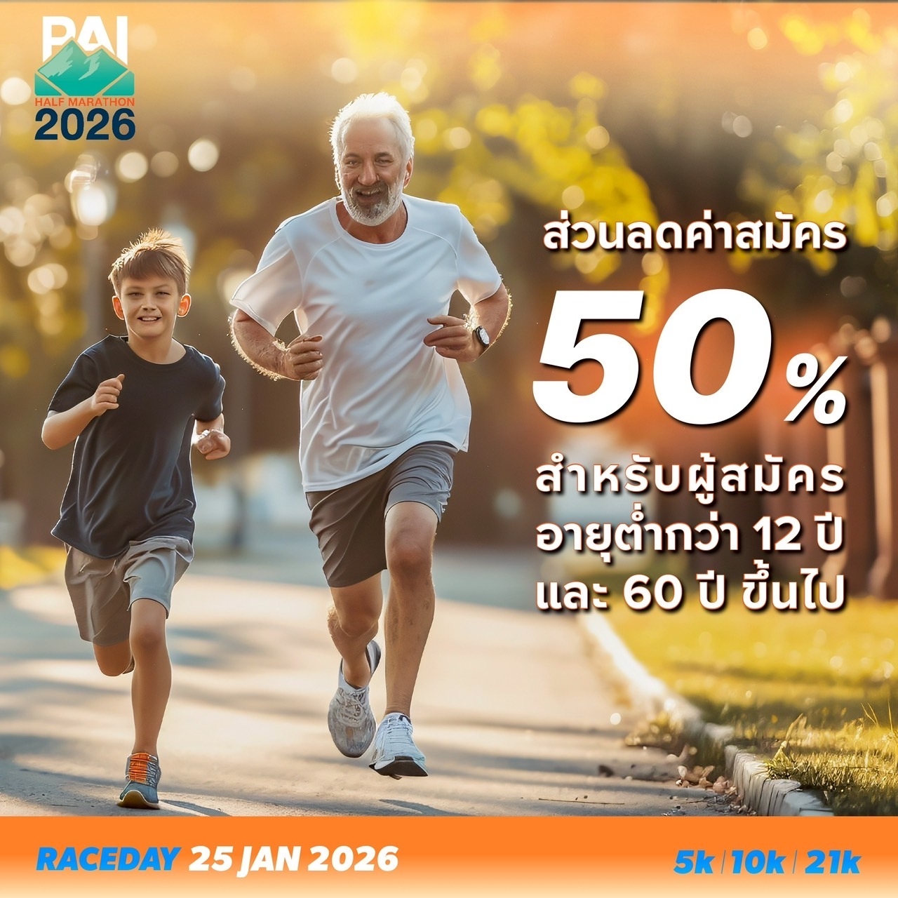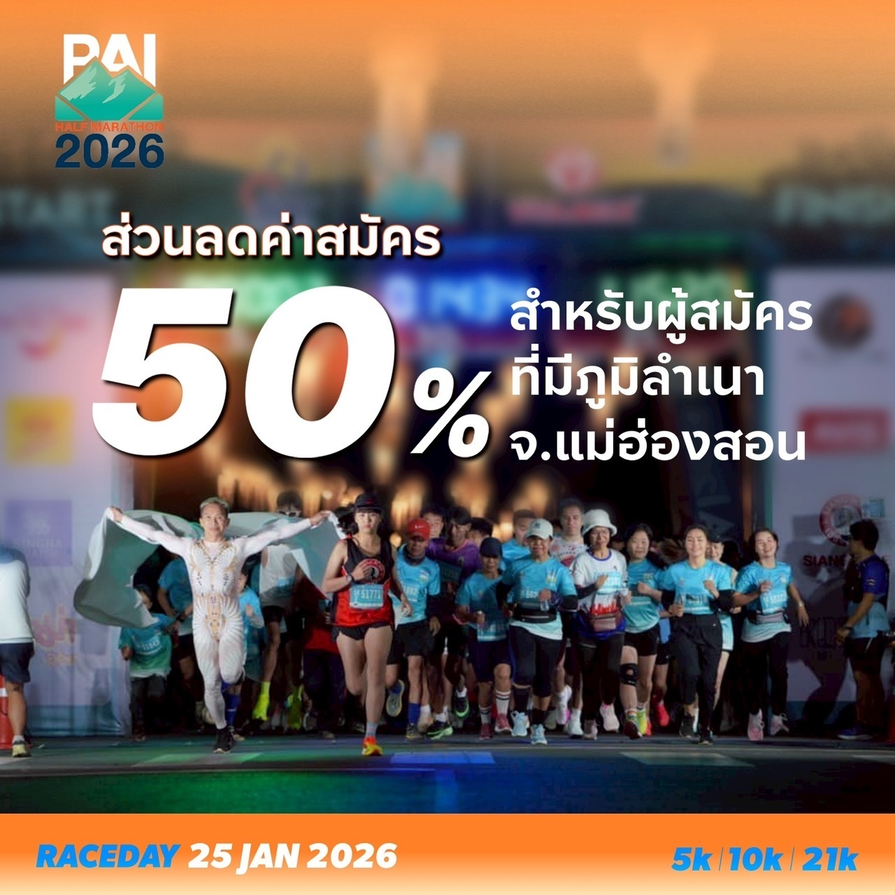 เมืองปาย…เมืองเล็ก ๆ กลางหุบเขา ที่เต็มไปด้วยเสน่ห์ของธรรมชาติและวิถีชีวิตอันเรียบง่าย ในปี 2026 นี้ เราขอเชิญคุณมาสัมผัสงานวิ่งที่ไม่เหมือนใครกับ PAI Half Marathon 2026 งานวิ่งที่ผสานการท่องเที่ยวเข้ากับความท้าทายอย่างลงตัว